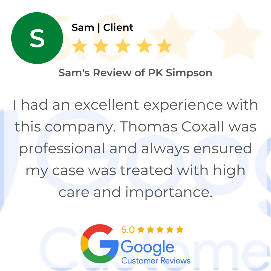 At PK Simpson, we operate on a no-win, no-fee basis, which means you won’t have to pay any upfront costs. We only charge fees if your claim is successful.